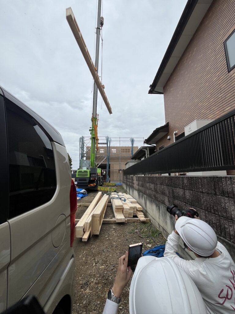 上棟当日にはイエココロ担当者様とカメラマンさんが初訪問してくれましたよ。