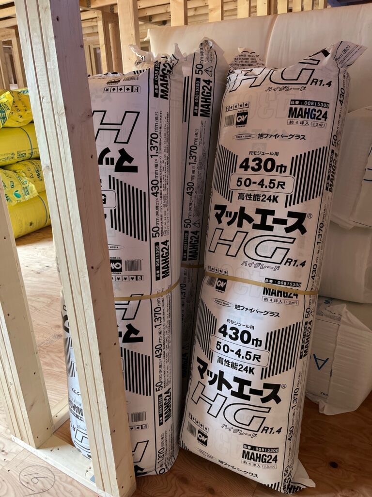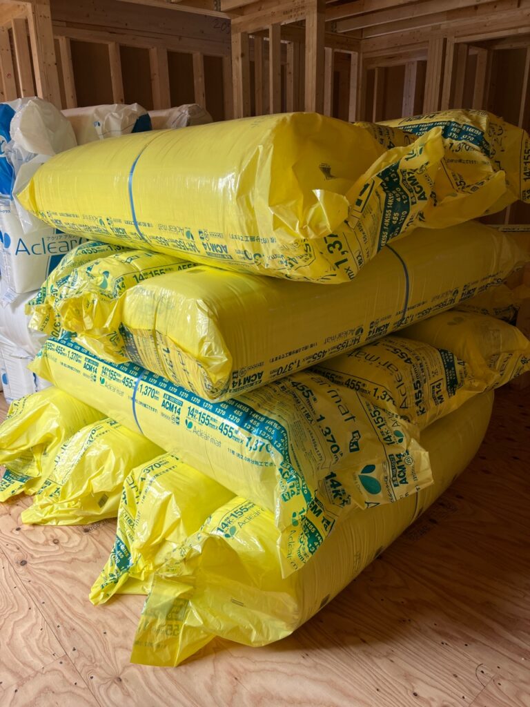 白い方は壁用。黄色い方は天井用断熱材となります。