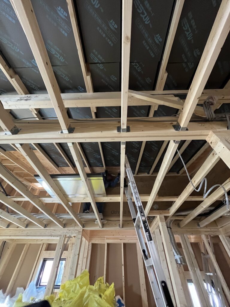 天井に遮熱ボード「ミラスルー」を貼っていきます。