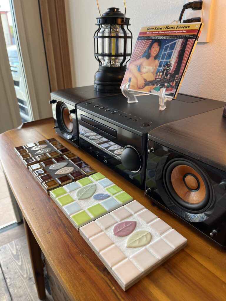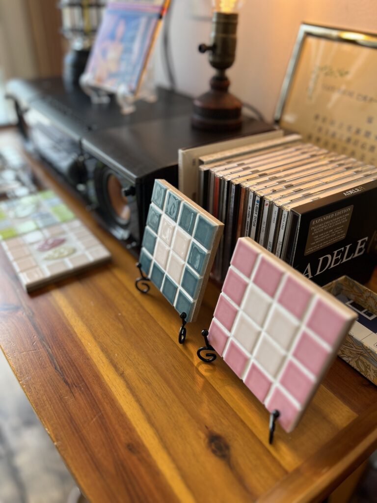 アトリエでは、手作りタイルコースターもご覧いただけます。