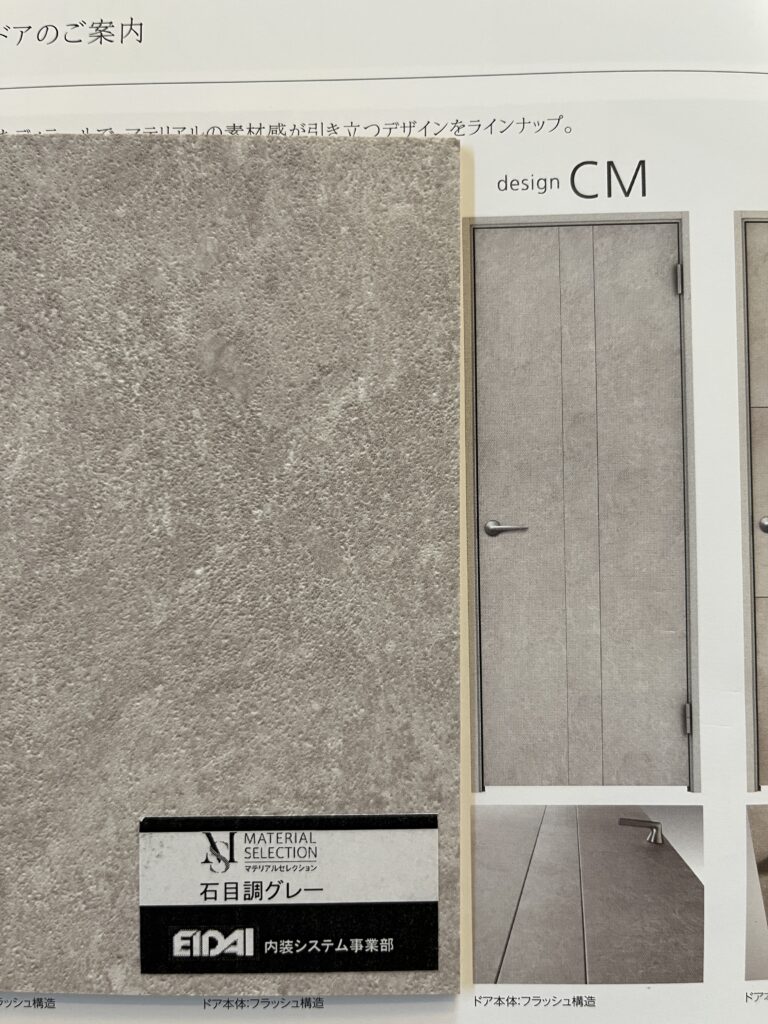 質感がまるで本物な木目建具に、EIDAI様のなかでも人気急上昇のマテリアルシリーズより採用させていただきました。写真はほんの一部ですが、他にもレザー調やモルタル調もありかっこいい連発でした♪