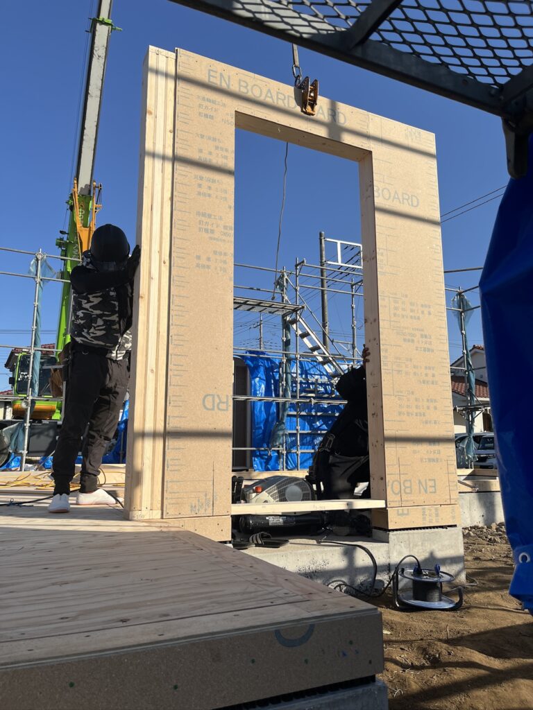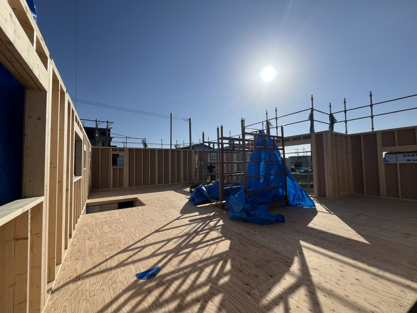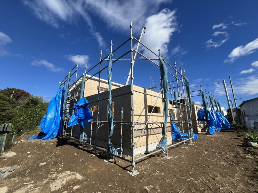 前橋市の新築現場では寒さに負けず!先日無事上棟が完了いたしました。