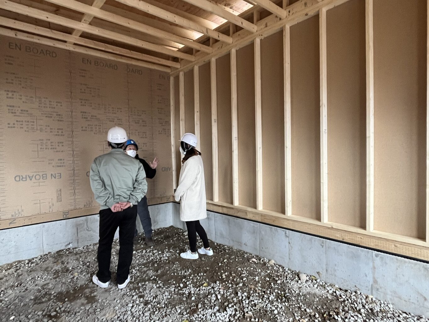 家の中、ガレージの中、使用されている各材料(金具や断熱材等)の説明を聞いて、感動されていました^_^