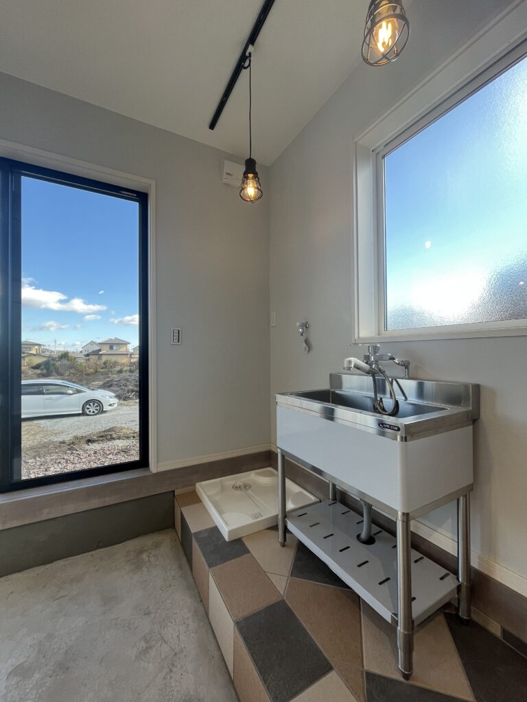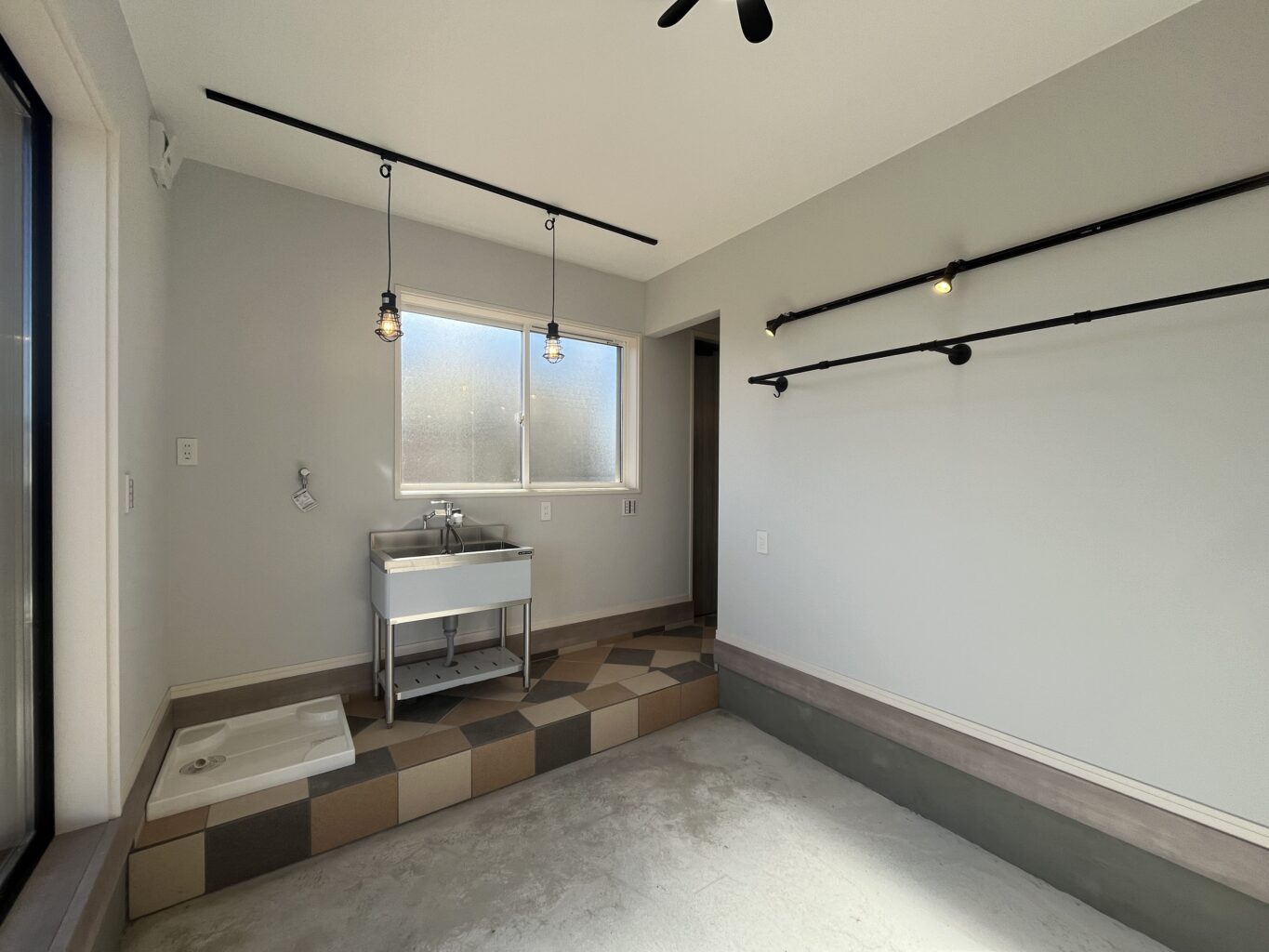 後々ジムにもなるランドリースペースは、わんちゃんたちのためのドッグシャワーつきです。
