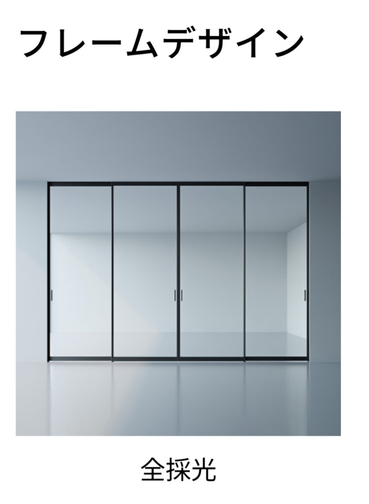 サッシのくくりになるため、建具枠とはまた異なる素材感がとても美しい印象。