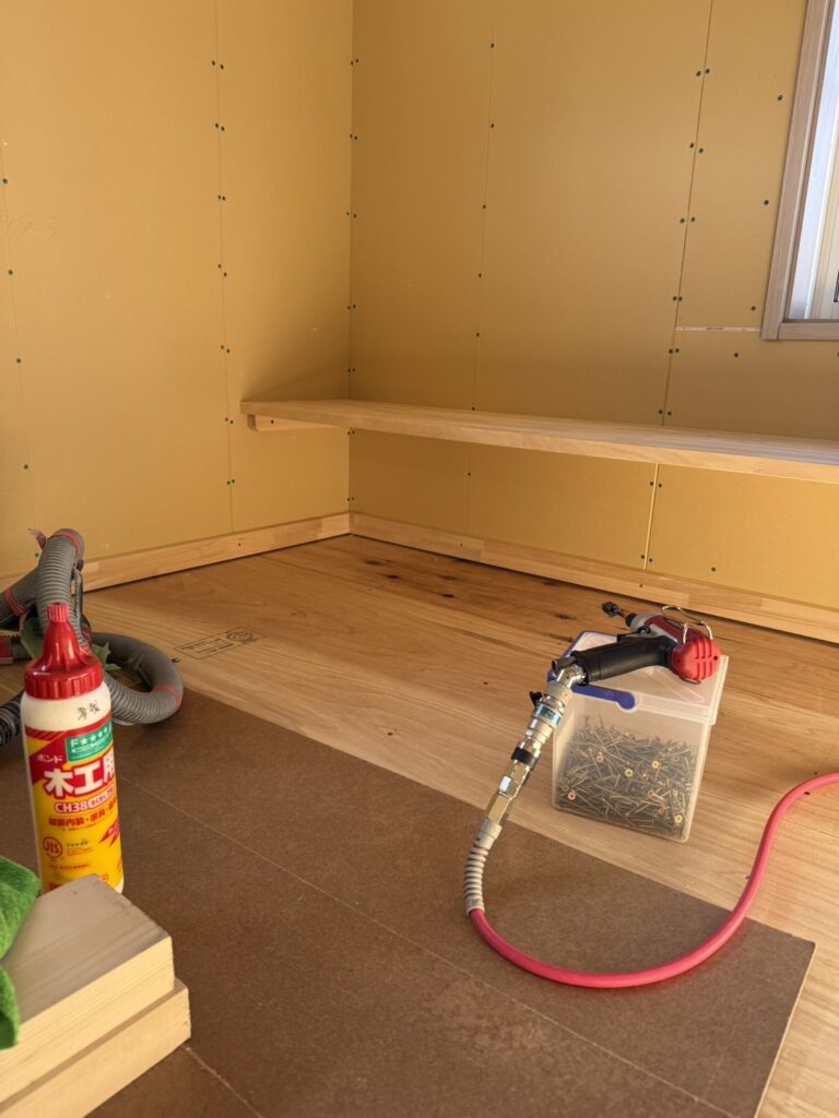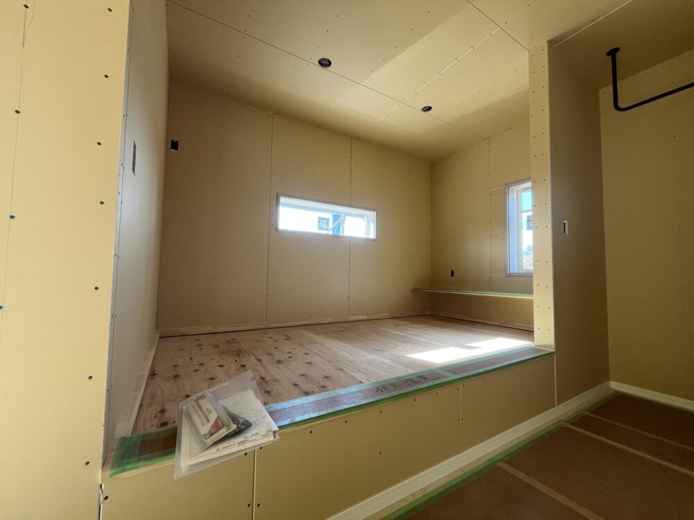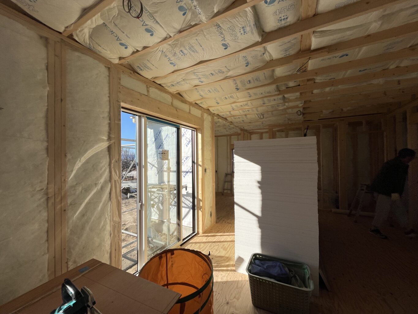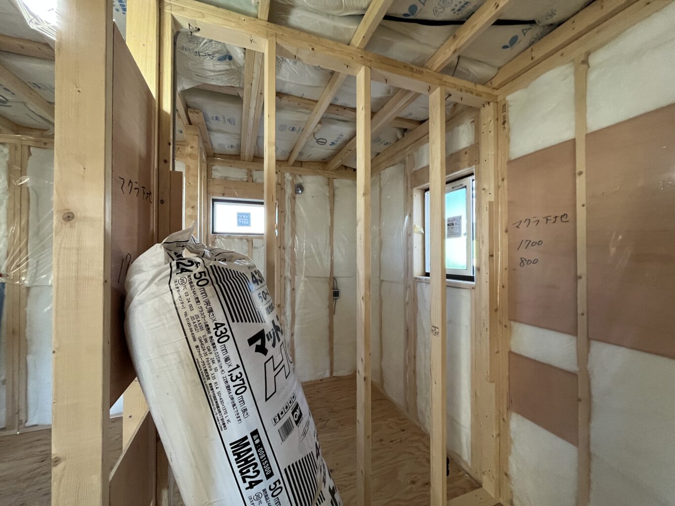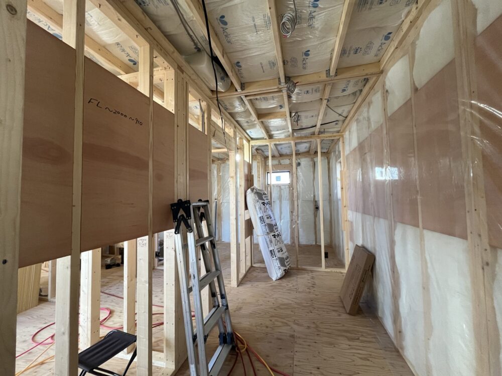 前橋市の現場です。下地材入れ、断熱材の内部施工を進行しています。