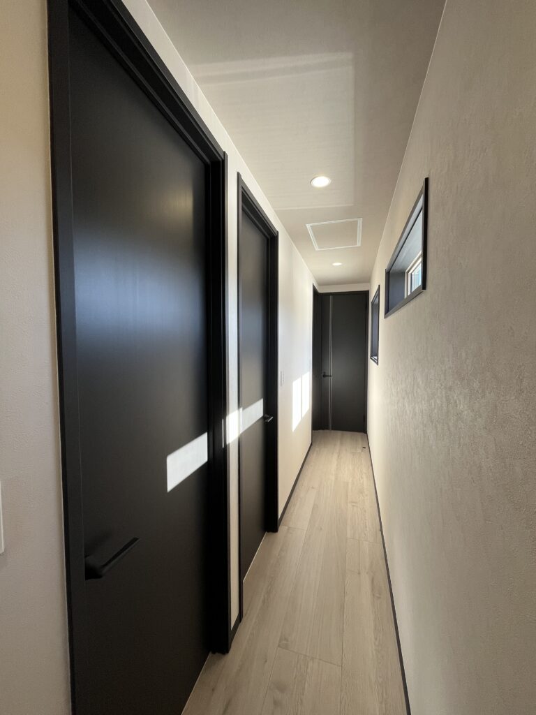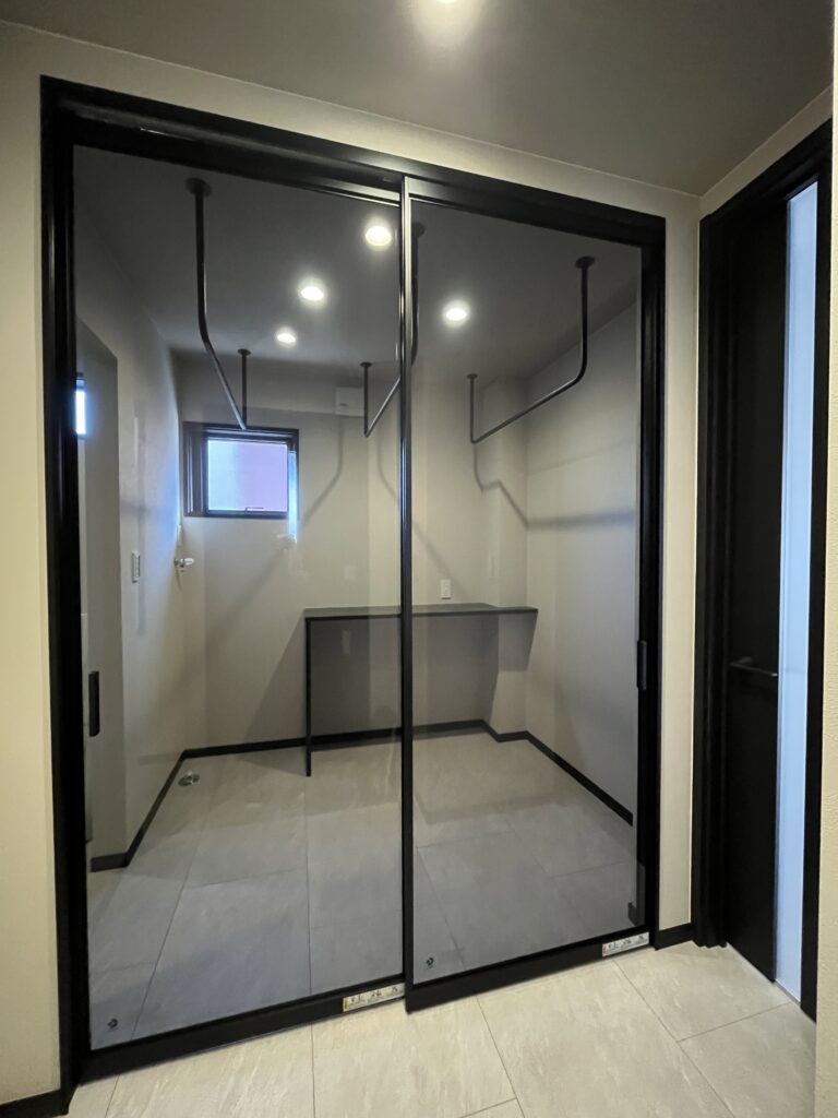 YKKファミット〈ガラス〉、EIDAIハイドア建具、BOSCH、EIDAI人気床材コンカーボのご提案採用などなど・・・かっこいいが超満載のモダンハウス。