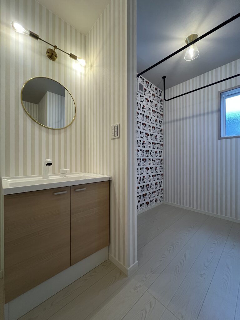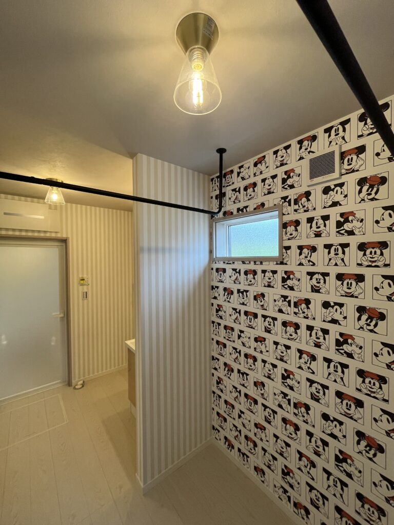 かわいいものが大好きな奥様のランドリー空間はミニーちゃんのクロスやかわいい洗面空間に♪