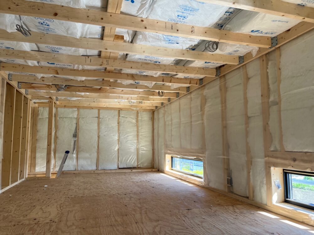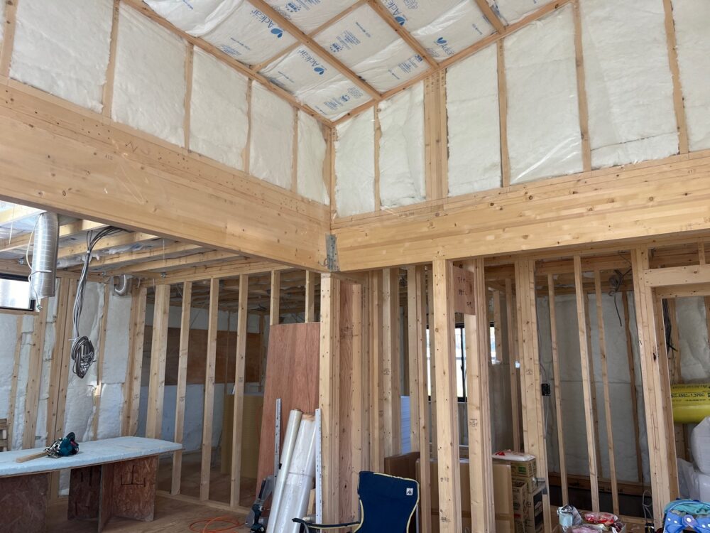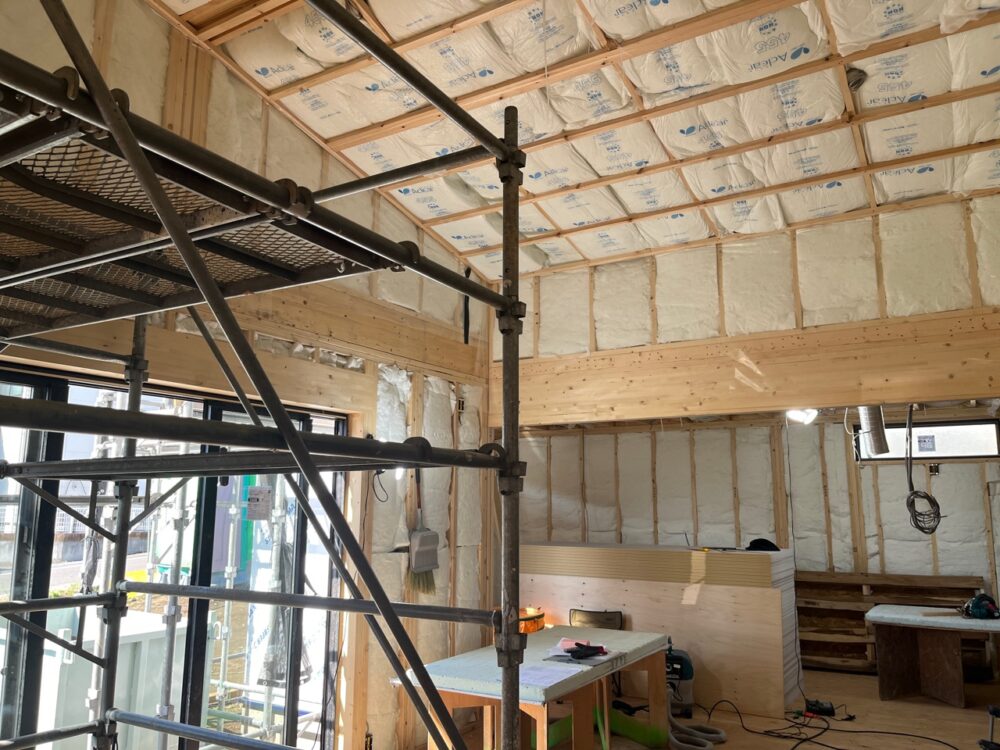 吉岡町の新築現場からです。断熱施工が始まりました