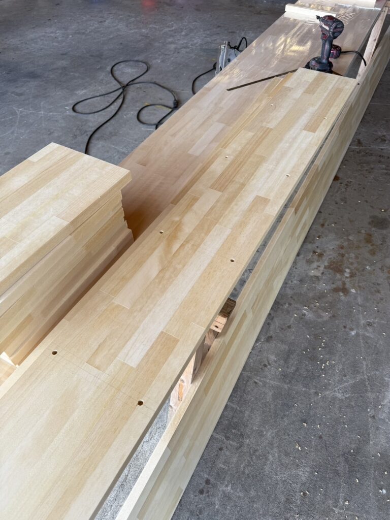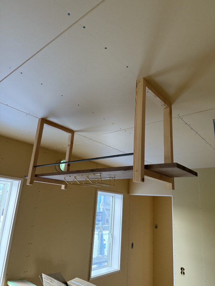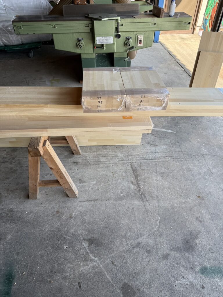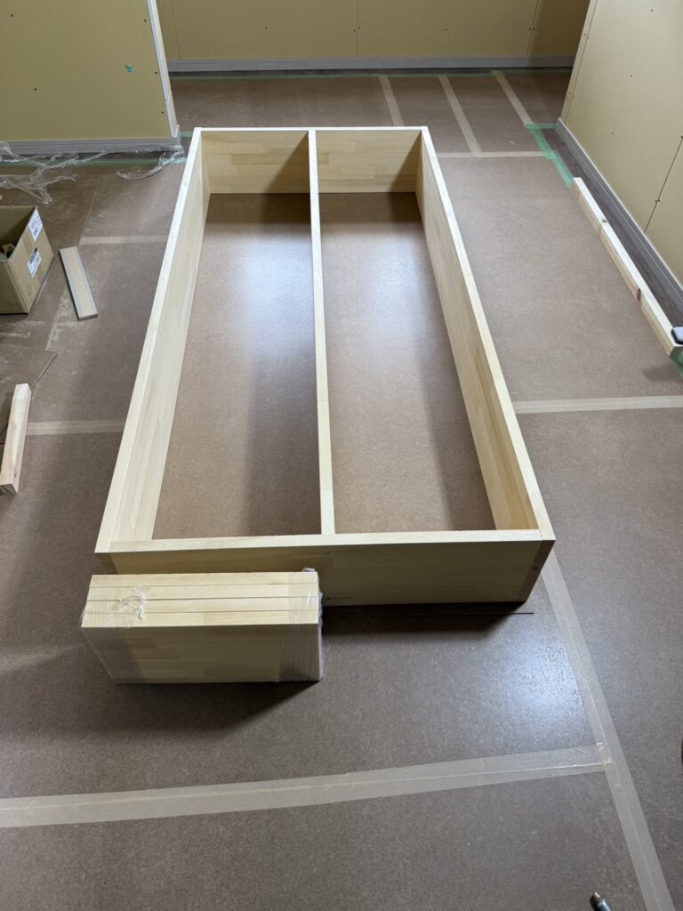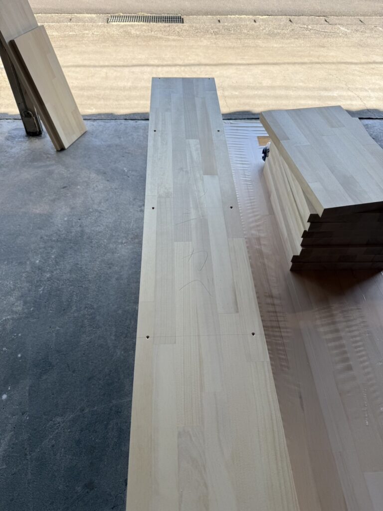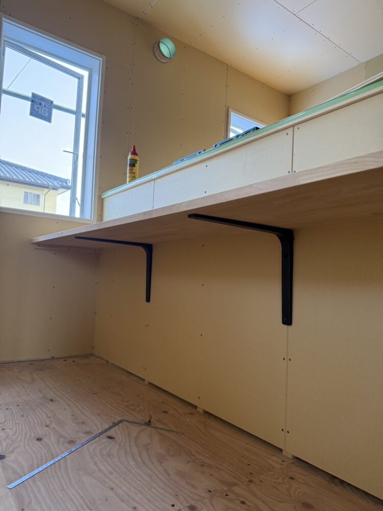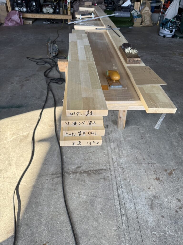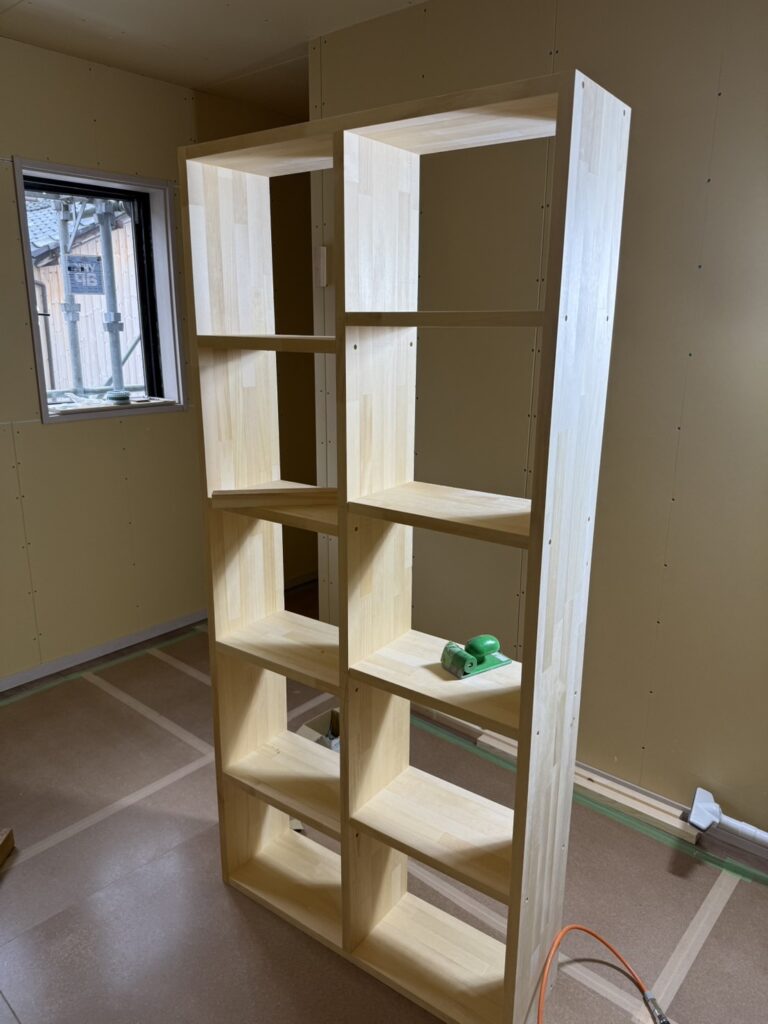高崎市の新築現場で使用するために、大工さんに集成材を使って本棚などの造作を作っていただきました。