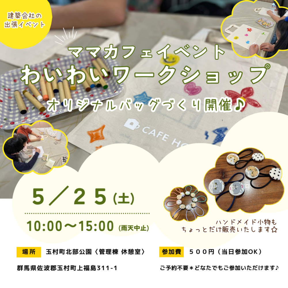 建築会社のちいさなワークショップ。はじめての出張イベントを通して、カフェハウスのことやママカフェのことを知って頂けたら嬉しいです☺お気軽にお立ち寄りください。