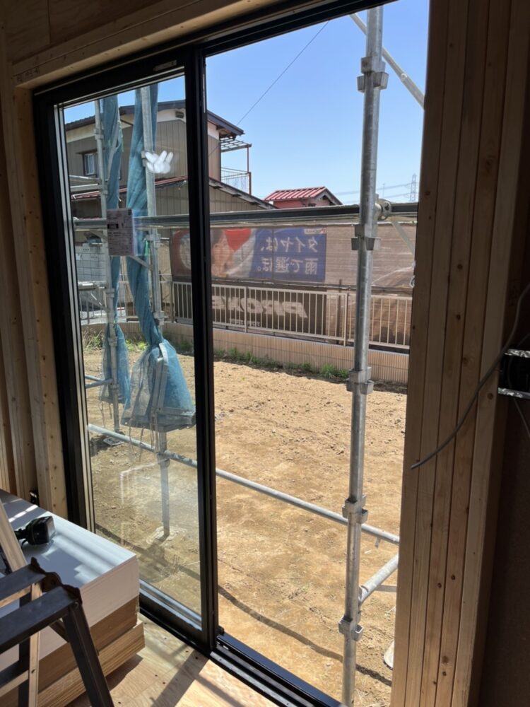 シートを貼ったら窓・玄関ドアも先行で施工取付をします。